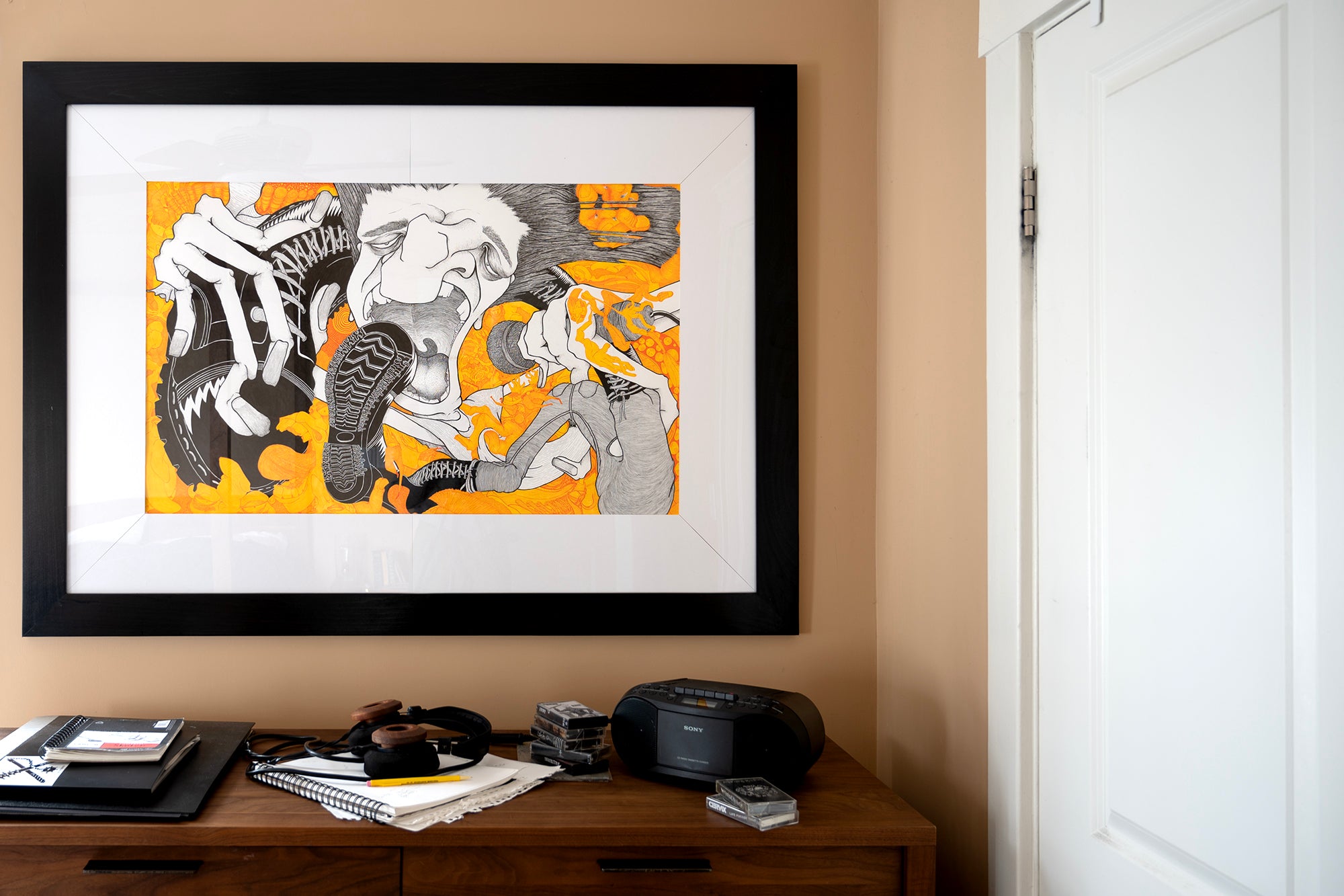 No detail is spared in this work – from comically crushed faces and a crowded mic, to flying belts, shoes, and that unforgiving floorboard. Whether you are looking to experience a moment in time entirely unfamiliar to you, or you are just looking to get lost in the linework square inch by square inch, there is plenty to dive into.