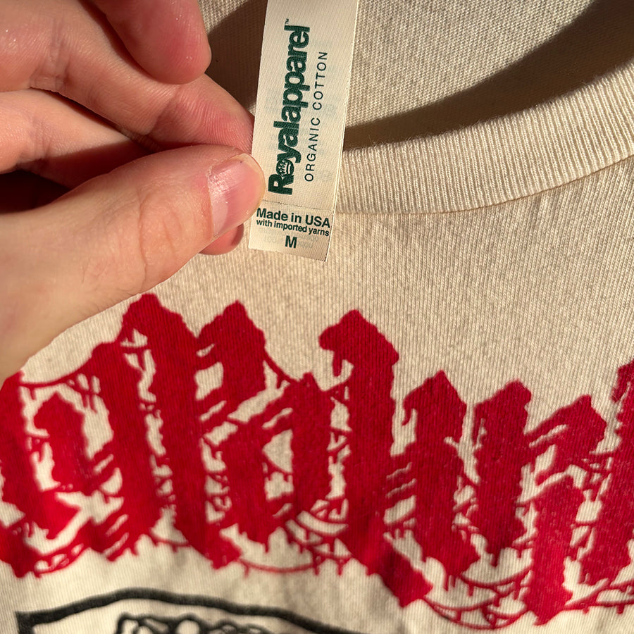 First in a collection of block-printed designs stamped onto USA-made organic cotton t-shirts.