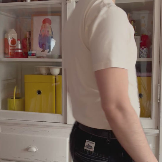 Blockprinted design stamped onto USA-made unisex t-shirts. All shirts are pre-washed once printed.