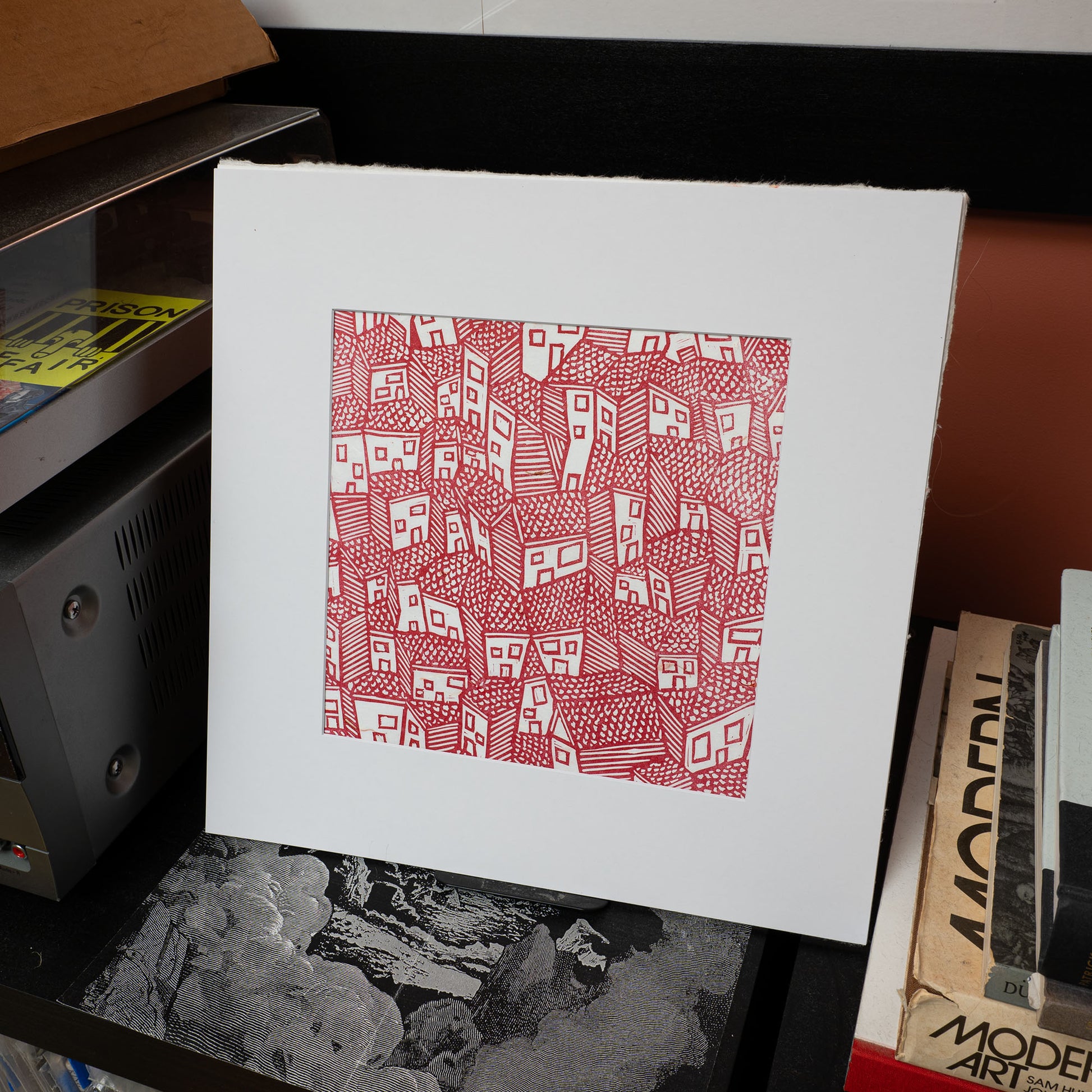 All linocut block prints are done in-house. Due to my humanist approach in this printing process, color saturation may vary. I believe that distressed prints add character and uniqueness – that's the beauty of block printing. The paper used for these prints is meant to have a handmade feel with a loose ragged edge. Each sheet is unique and may vary differently from the images displayed. Sizing may also fluctuate within 1in. of described size