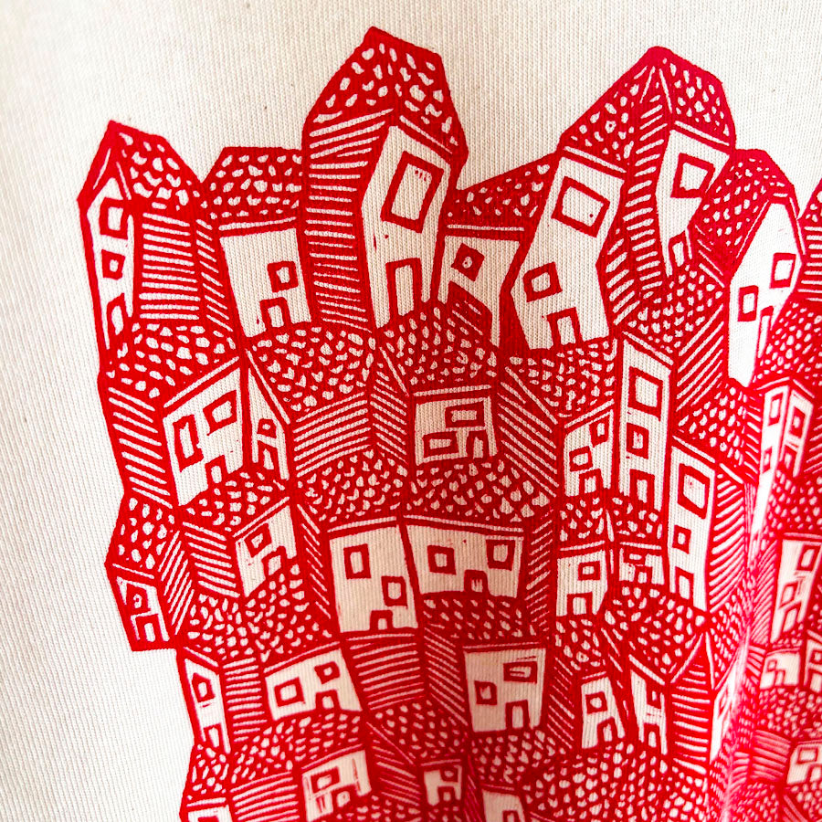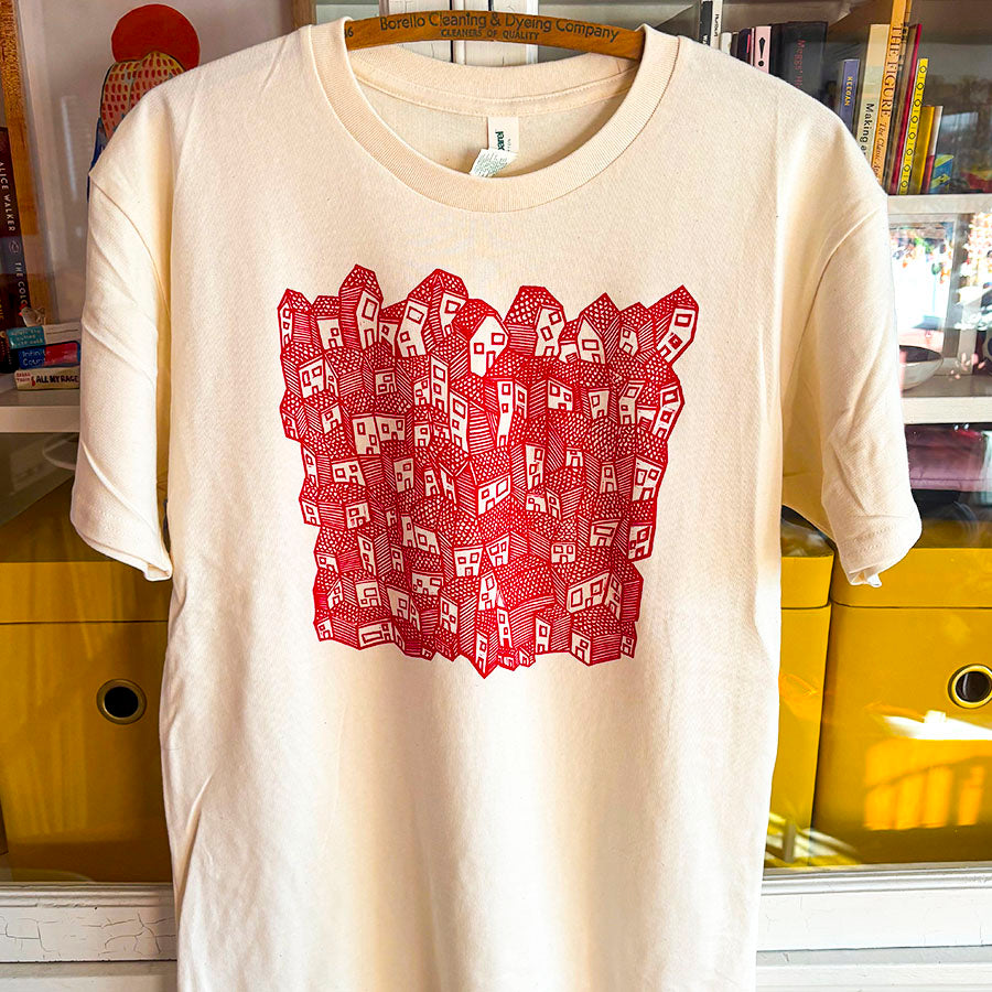 Third in a collection of block-printed designs stamped onto USA-made organic cotton t-shirts.